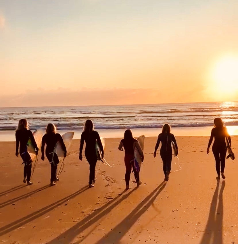 Hi, I'm Nicole, and that's me second from the right with my daughter and my close friends I surf with everyday.
